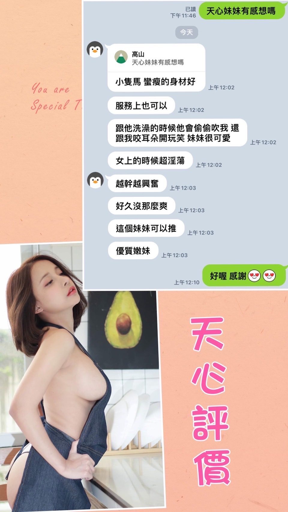 本內容18歲以下不宜觀看,請自行退離本主題,本網站已盡告知讀者之義務,且並無意違反兒童及少年性交易防制條例29所稱「以廣告物、出版品、廣播、電視、電子訊號、電腦網路或其他媒體,散布、播送或刊登足以引誘、媒介、暗示或其他促使人為性交易之訊息者」,請讀者自重。本文為網路創作,與現實之人事物無關,內容如與現實雷同,純屬巧合。本網站嚴格禁止發表任何具爭議之標題及文字內容、描述、照片、徵人, 一經發現一律封鎖帳號,圖片尺度限制禁止:胸部特寫、臀部特寫、任何暗示性姿勢、裸露或過於暴露穿著、描述身材文字的照片。