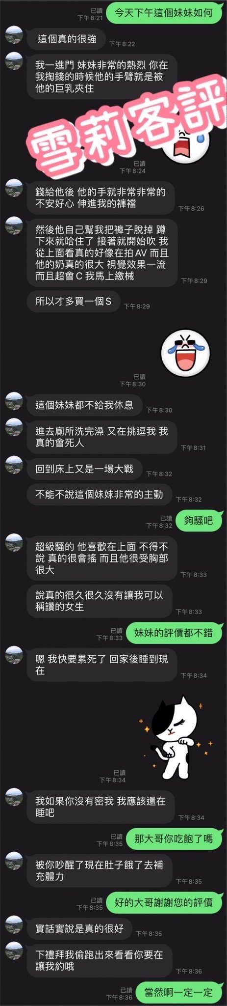 本內容18歲以下不宜觀看,請自行退離本主題,本網站已盡告知讀者之義務,且並無意違反兒童及少年性交易防制條例29所稱「以廣告物、出版品、廣播、電視、電子訊號、電腦網路或其他媒體,散布、播送或刊登足以引誘、媒介、暗示或其他促使人為性交易之訊息者」,請讀者自重。本文為網路創作,與現實之人事物無關,內容如與現實雷同,純屬巧合。本網站嚴格禁止發表任何具爭議之標題及文字內容、描述、照片、徵人, 一經發現一律封鎖帳號,圖片尺度限制禁止:胸部特寫、臀部特寫、任何暗示性姿勢、裸露或過於暴露穿著、描述身材文字的照片。
