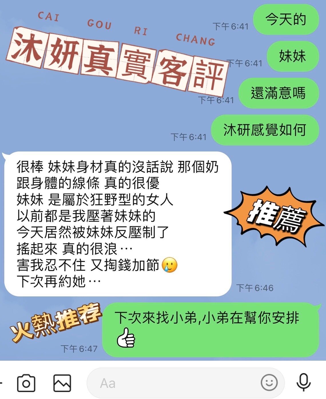 ae678a4f-371d-47a8-88eb-caefb7da1575沐妍🍬 精緻A級陸妹(陸) 🔥F級大奶一手無法掌握🔥 🔥腰以下全是腿 標準腿玩年🔥身體密碼167 / 44 / F服務項目: 無套吹💕戴套做💕按摩💕甜蜜共浴💕小親親💕胸推💕屁推💕奶泡💕69💕品鮑💕毒龍💕漫遊過水💕角色扮演(自備)💕絲襪服務(自備)💕🔥火熱加值服務🉑️ 自慰秀+300 ⏩:30分 1s 3900⏩:50分 1s 4400⏩:60分 2s 4900台北外籍台北定點