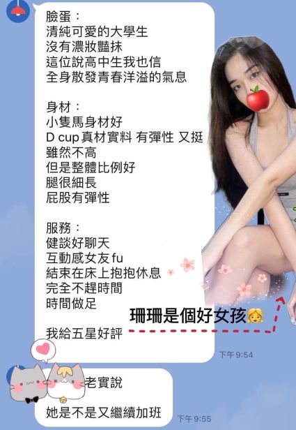 可配合:共浴/無套吹/溫馨調情/胸推/可親親喇舌/69/品鮑/按摩/愛愛噴出一次