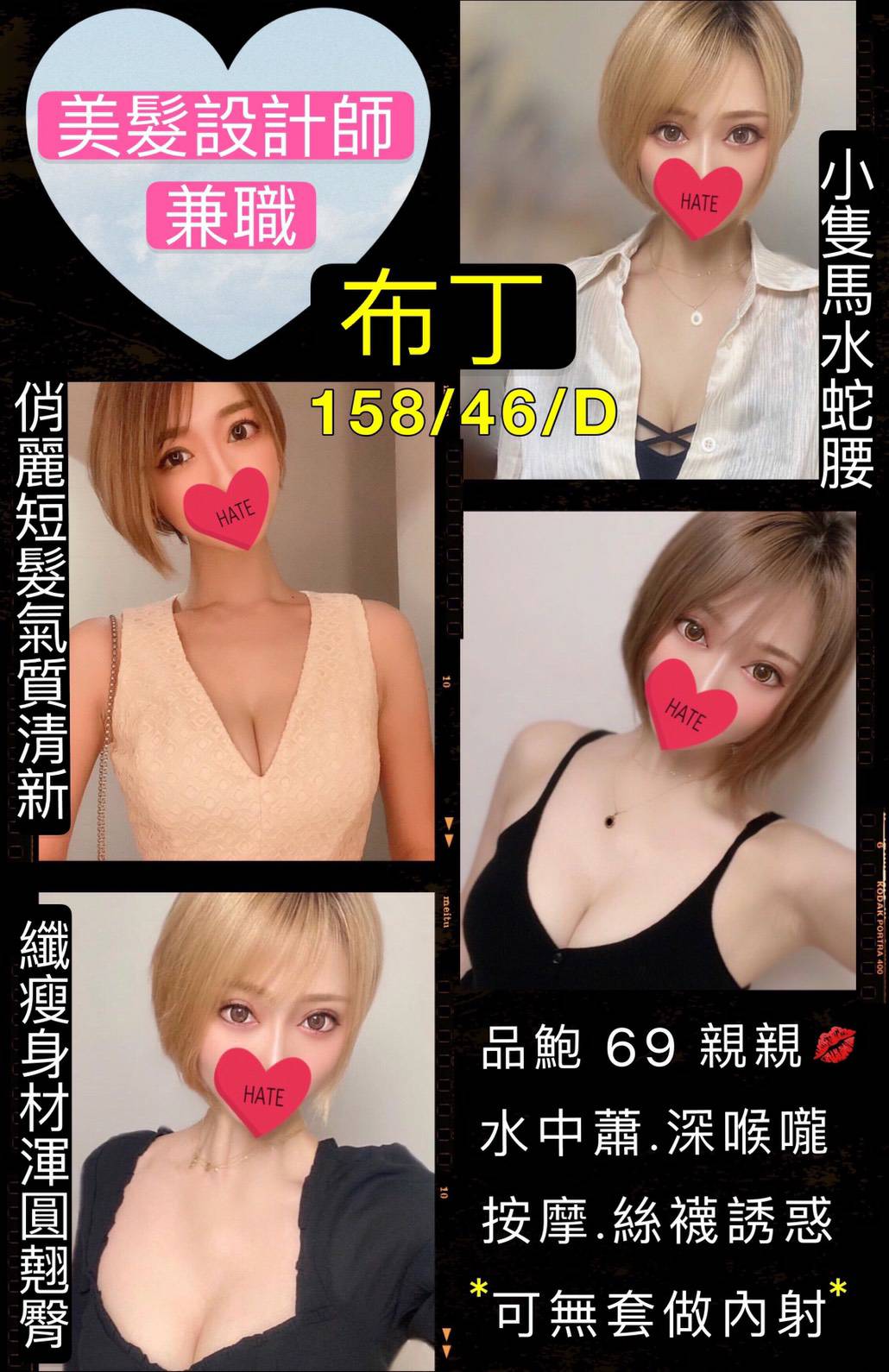 無套吹.殘廢澡.親親.品鮑.69.胸推.水中蕭.深喉嚨.按摩.情趣用品(非侵入式)+500.毒龍+500.無套內射+1000.(絲襪.角色扮演客自備)