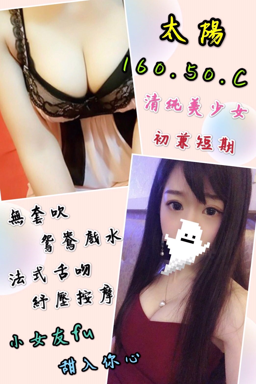 無套吹、69品鮑、奶泡、舌吻、殘廢澡、按摩、調情