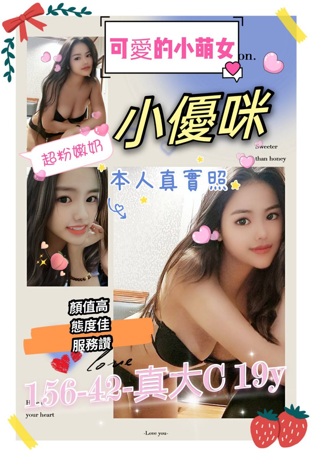 小優咪 越妹妹 156/42/真大C 19y 中文溝通