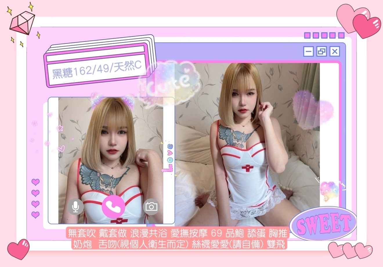 舌吻(視個人衛生而定) 絲襪愛愛(請自備)