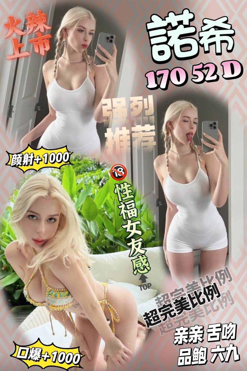 | 可服務項目 | 包夜, 口爆, 顏射, 雙飛/三飛 |