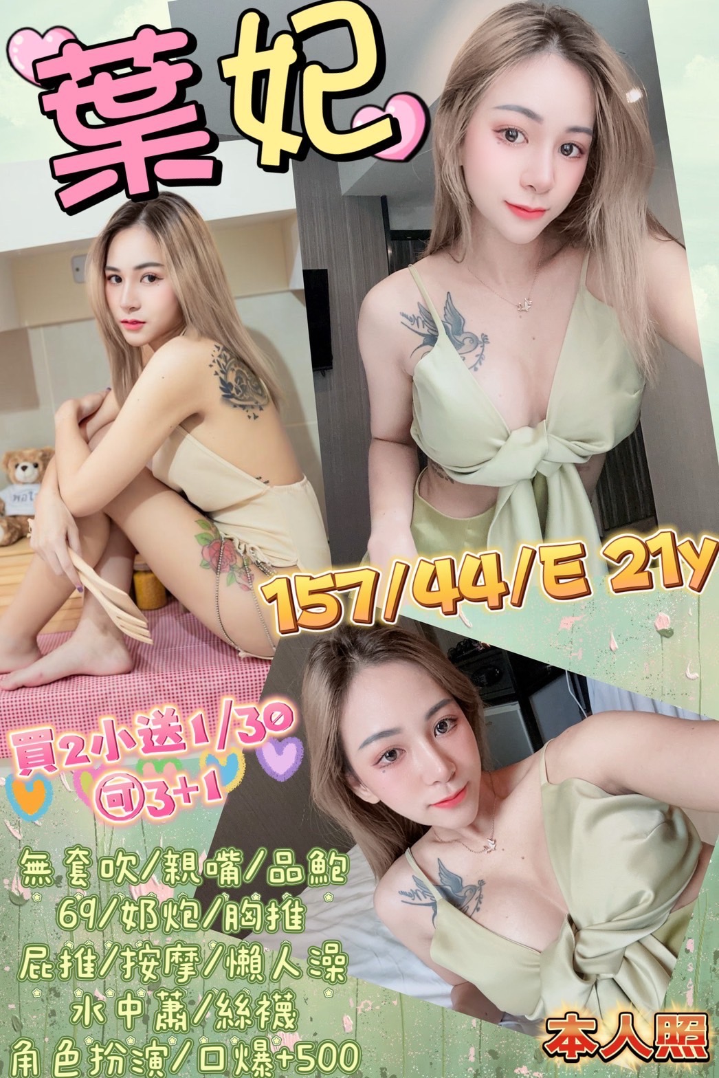 無套吹/親嘴(嘴巴乾淨清潔)/品鮑/69/奶炮胸推(需先告知)