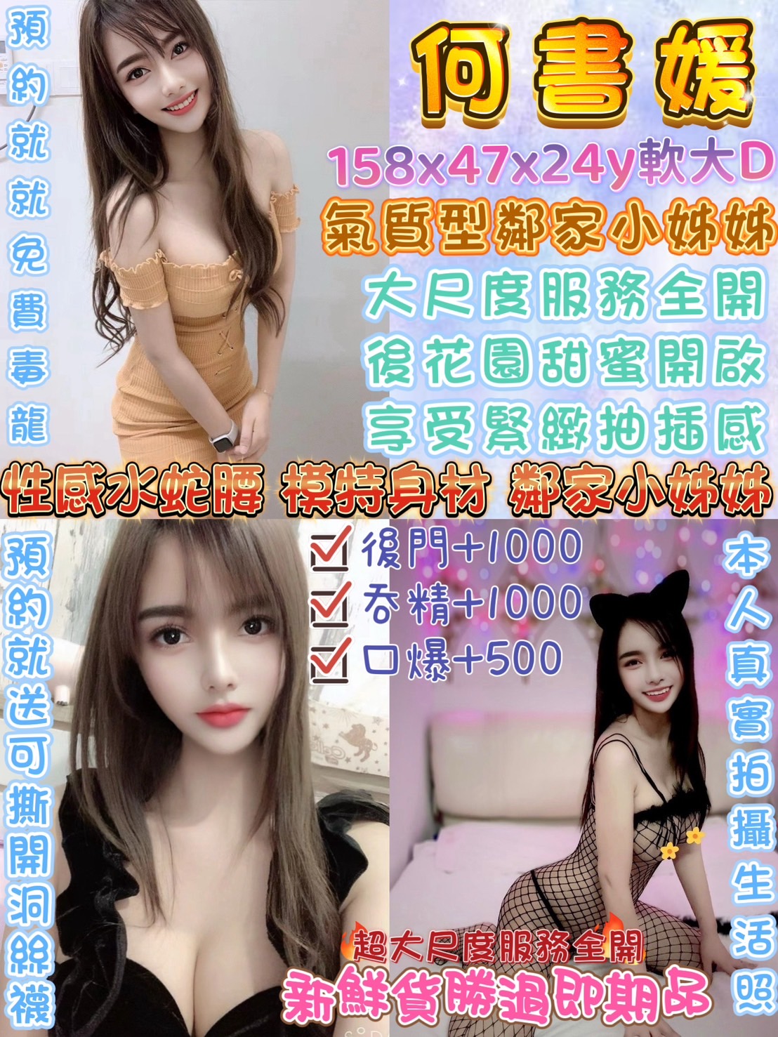 包夜, 可後門, 口爆, ■毒龍, 顏射, 情趣, 自慰秀