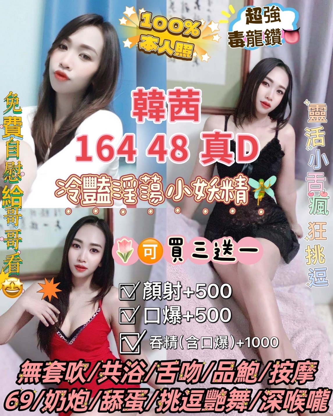 奶炮/舔蛋蛋/挑逗艷舞/胸磨臉/深喉嚨/毒龍/免費自慰秀