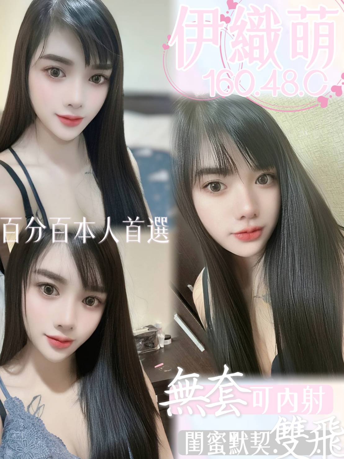 無套內射, 口爆, 顏射, 情趣, 自慰秀, 雙飛/三飛