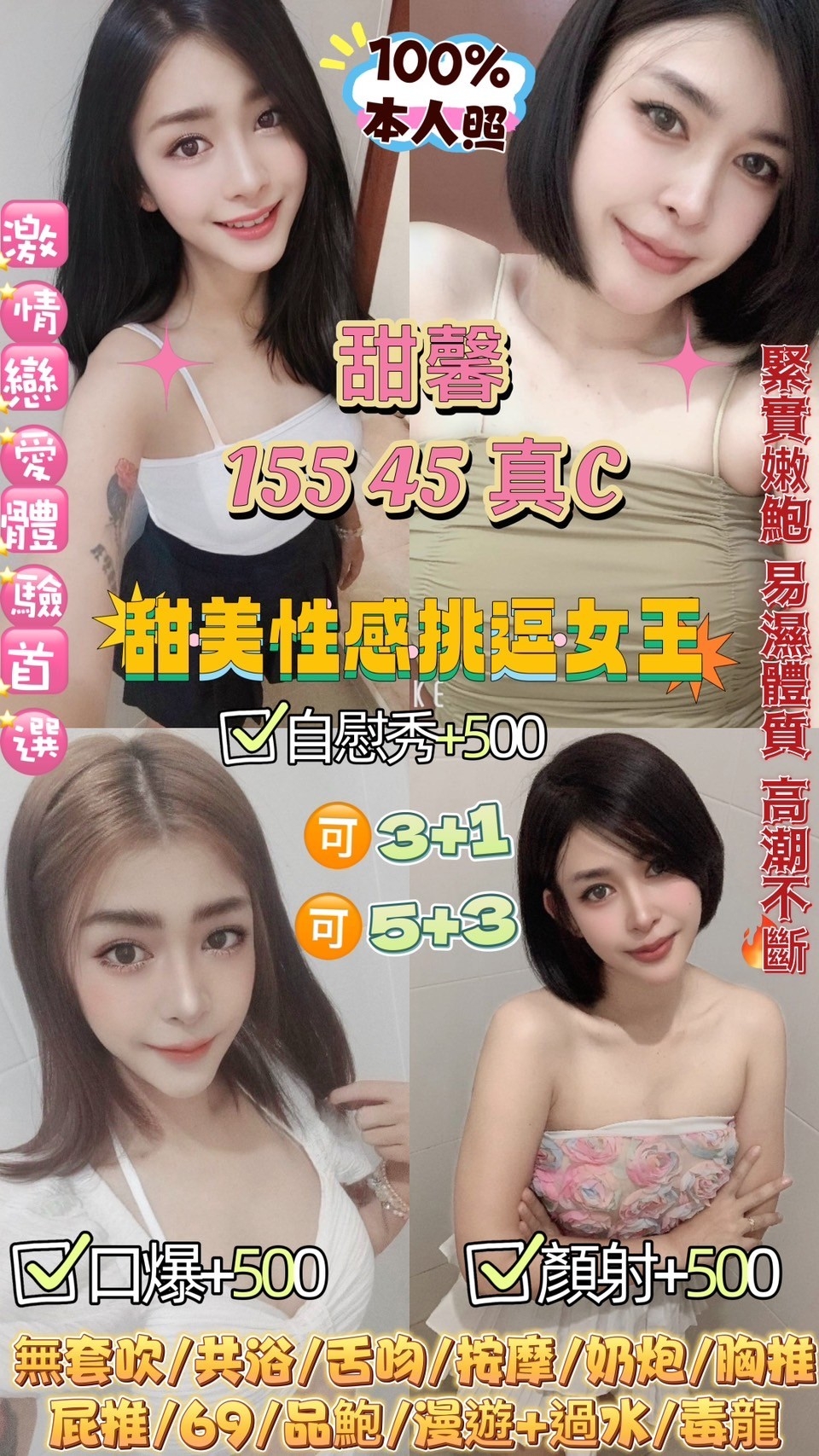 奶炮/胸推/屁推/69/品鮑/漫遊+過水/毒龍
