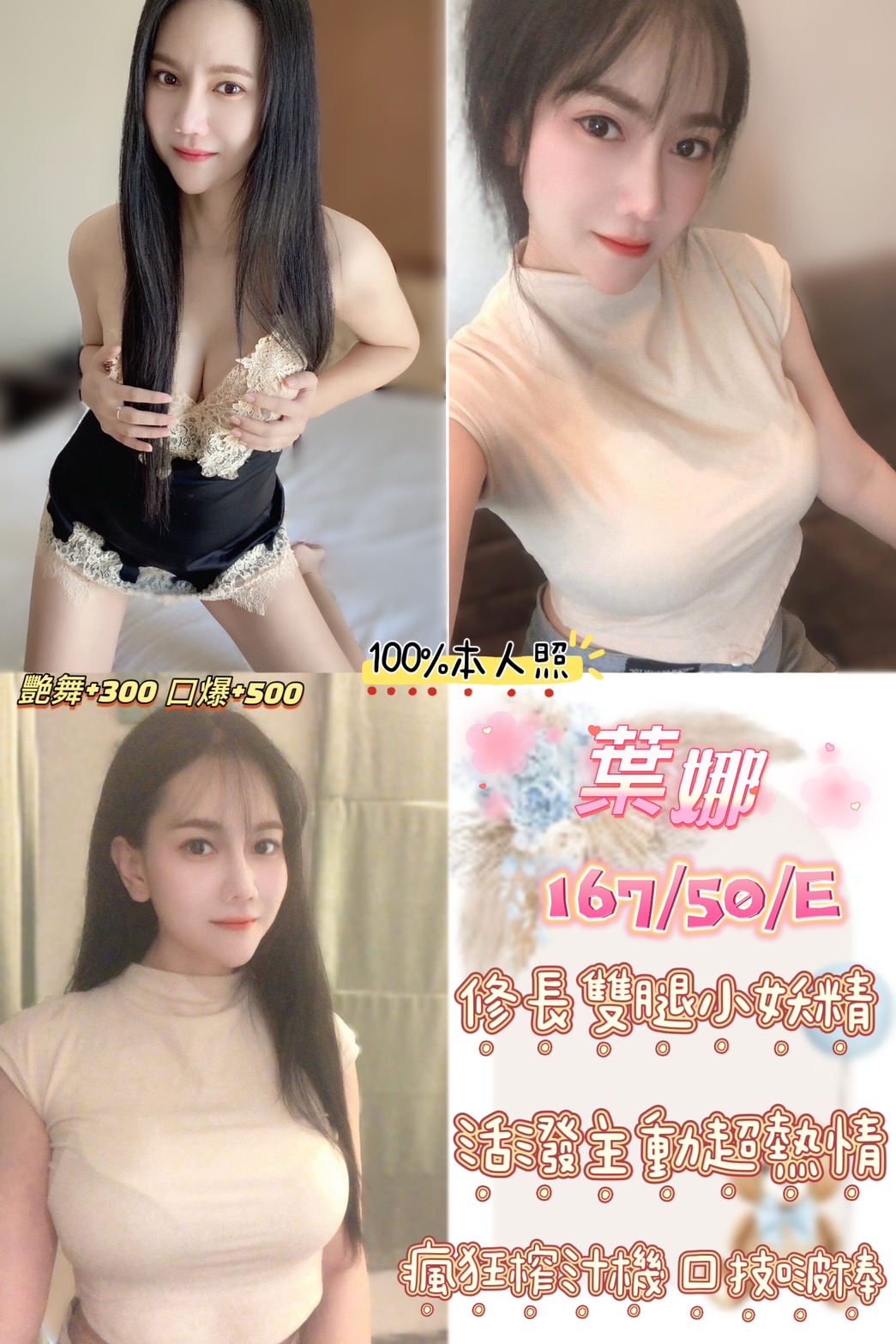 | 可服務項目 | 包夜, 口爆, 情趣, 艷舞秀 |