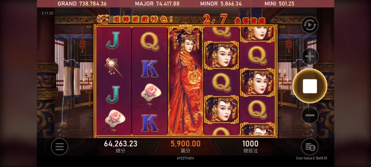 - 獎金結構:根據玩家匹配的符號數量和類型,不同組合會有不同的獎金支付比例。通常高價值符號(如武則天的肖像)會帶來更高的獎金。