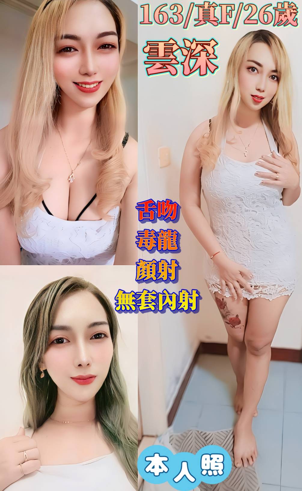 | 可服務項目 | 無套內射, ■毒龍, 顏射 |