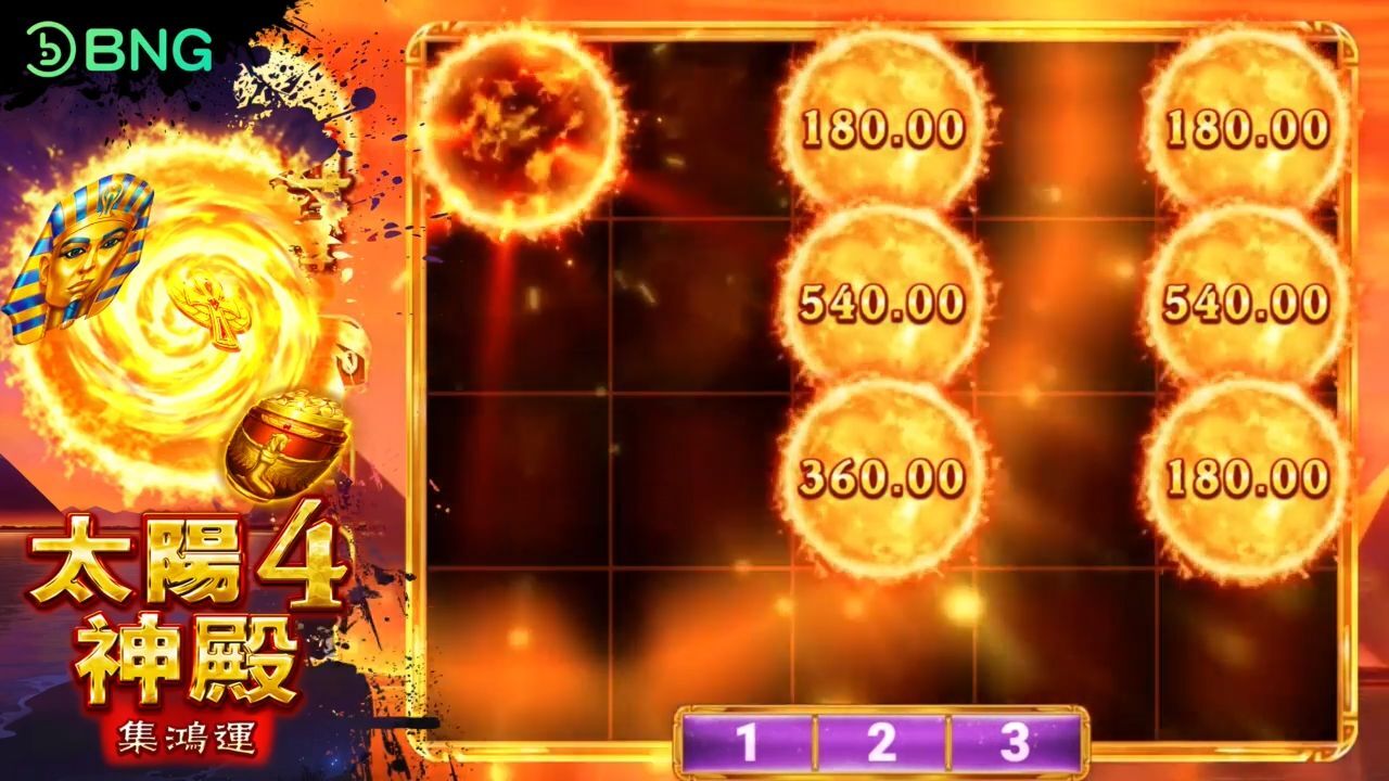 - 主題:以古代太陽神話為背景,玩家將探索神秘的神廟,尋找隱藏的寶藏和獎勵。