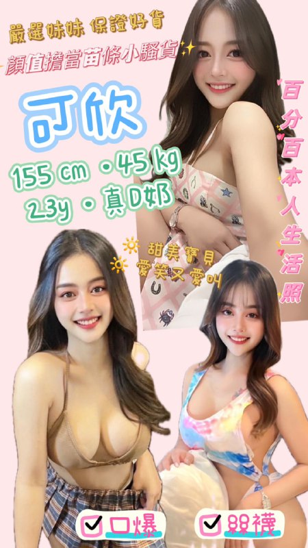 可欣 (泰) 顏值擔當苗條小騷貨 155 / 真D奶 / 23y / 45 kg無套吹親親舌吻 按摩水中蕭 奶泡胸推屁推六九品鮑絲襪(自備) 口爆+500…