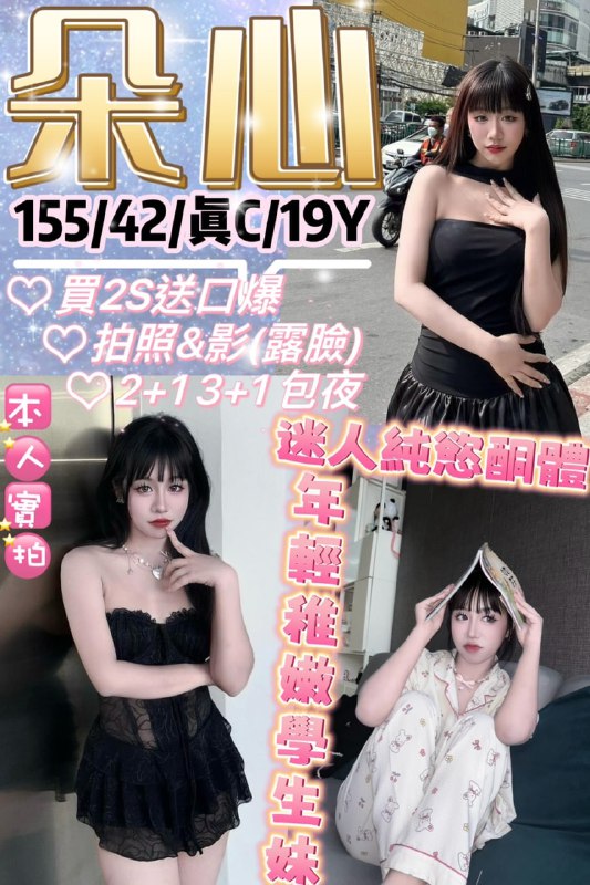 朵心 155/42/真C/19Y/泰國簡單中文&白皮膚&無牙套基本服務親嘴/舌吻(視清潔)/奶炮共浴/幫脫衣服/無套吹舔蛋/品鮑/69/挑逗/胸…