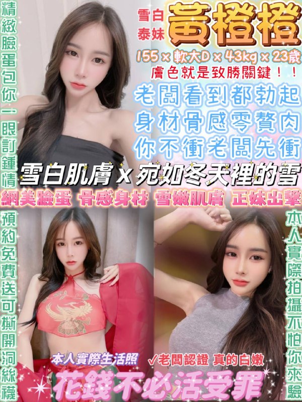 黃澄澄(泰)155/軟大D/43g/23y無妊娠紋無牙套不抽菸英文溝通無套吹共浴親親舌吻品鮑69絲襪加值服務 口爆+500預約就送30分鐘方案除外 免費開洞絲襪…