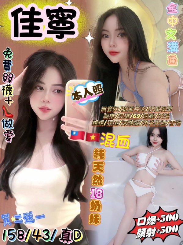 中山館佳寧(越) 特色:天然乳房/優質服務/中文溝通密碼:158/43/真D時間: 13:00-02:00項目:無套吹/甜蜜共浴/舒壓按摩/胸推/屁推/69/品…