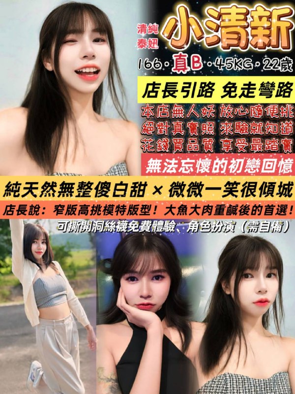 泰妞 – 小清新 166×真B×45kg×22歲 膚白 小刺青 長腿 不假掰 英文溝通 基本服務 無套吹 洗澡澡 小親親 品鮑 六九 小按摩 舌吻 …