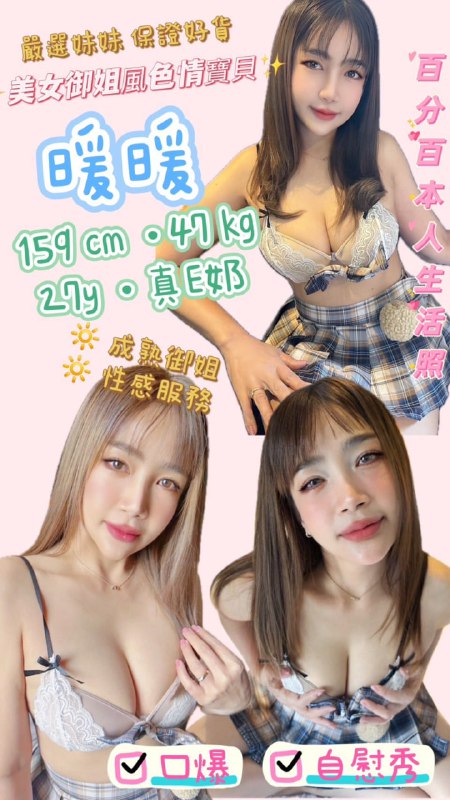 瑤瑤(泰國)162/54/真G(本人照)320030分1S360050分1S520090分2S服務內容◉ 品鮑 簡單按摩 奶炮◉ 親嘴 無套吹 69 舌吻超值加…