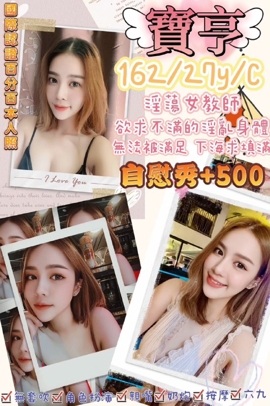 新妹 寶亨保證100%本人照162/27y/C服務項目無套吹/親嘴/六九/奶炮按摩/角色扮演(自備)加值服務自慰秀+500買3節送1節淫蕩女教師欲求不滿的淫亂身…