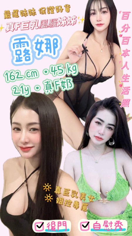 露娜 (泰) AV女優下海接客 162 / 真 F 奶 / 21y / 45kg無套吹舌吻水中蕭 按摩六九屁推胸推絲襪(自備)後門+1000 自慰秀+50…