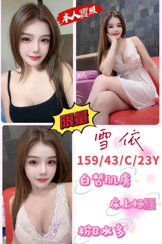 Home»ZS5.專頁指定»雪依馬妹 159/43/C/23Y1s 40分 27001s 60分 33002s 60分 3800無套吹/共浴/小親/品鮑/69/奶炮/胸推/臀推/自慰秀/水…