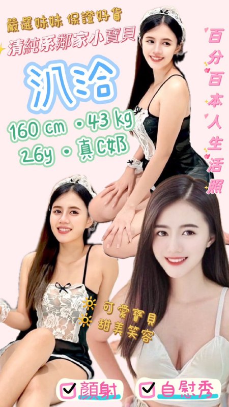 汐止區 汃恰 (泰) 清純系鄰家小寶貝 160 / 真C奶 / 26y / 43 kg無套吹水中蕭 按摩六九屁推胸推絲襪(自備) 自慰秀+500 射顏…