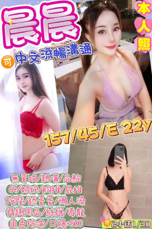 晨晨 100%本人照 (馬)(157/45/E 22歲前凸後翹S曲線 (中文溝通)服務項目無套吹/親嘴/69品鮑/奶炮懶人澡/胸推/按摩/屁推絲襪/角色扮演/毒…