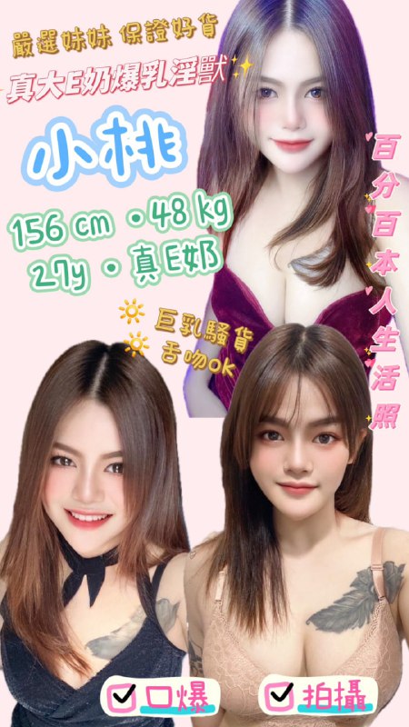 小桃 (泰) 真!大E奶爆乳淫獸 156 / 真E奶 / 27y / 48 kg無套吹親親舌吻 按摩水中蕭 奶泡胸推屁推六九品鮑絲襪(自備) 口爆+吞精+…